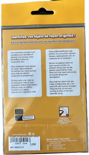 Ecrivez avec une craie ou un marqueur craie, effacez avec un chiffon humide