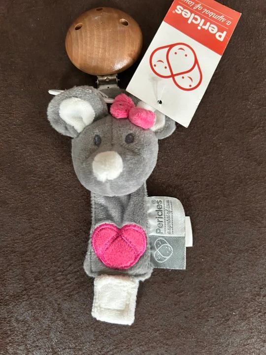 Cet attache-sucette pratique de Pericles garde la sucette de bébé propre et à portée de main avec sa pince à vêtements facile à utiliser. Conçu avec une adorable souris bleue, il est sûr et confortable pour bébé. Dites adieu aux sucettes perdues et aux vêtements tachés !