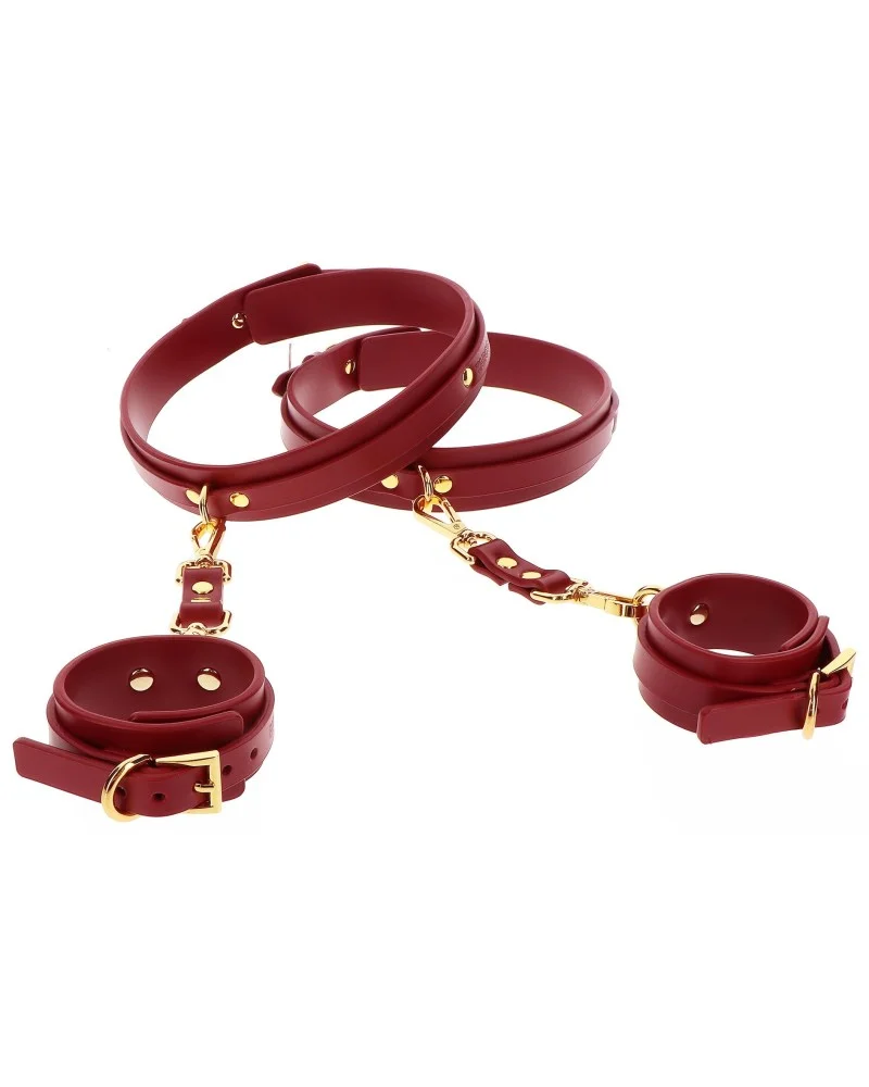 Les attaches cuisses-poignets Taboom Rouge transforment vos explorations intimes en expériences mémorables. Cet ensemble combine une attache pour les cuisses (tour ajustable 44-62 cm) et des menottes de poignets (tour ajustable 20-25 cm), offrant une polyvalence adaptée à toutes les morphologies. Confectionnées en polyuréthane premium, ces attaches garantissent confort et durabilité lors de vos jeux de bondage. Leur design épuré et leur finition soignée en font un accessoire à la fois fonctionnel et esthétique pour enrichir votre intimité en toute confiance.