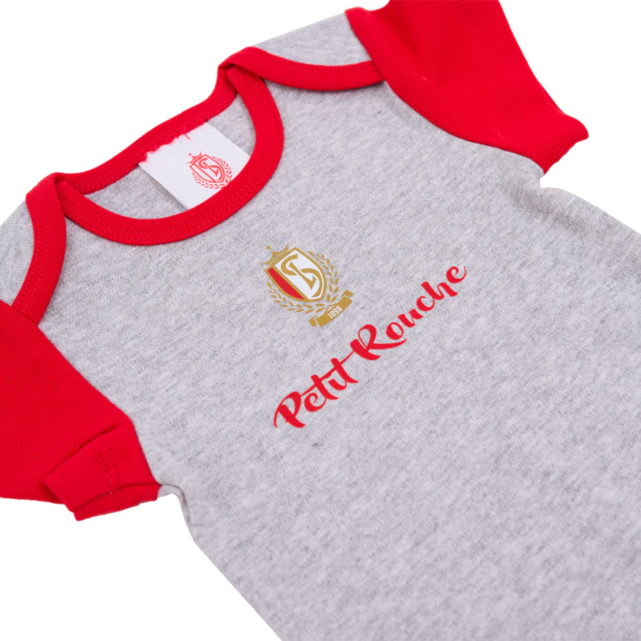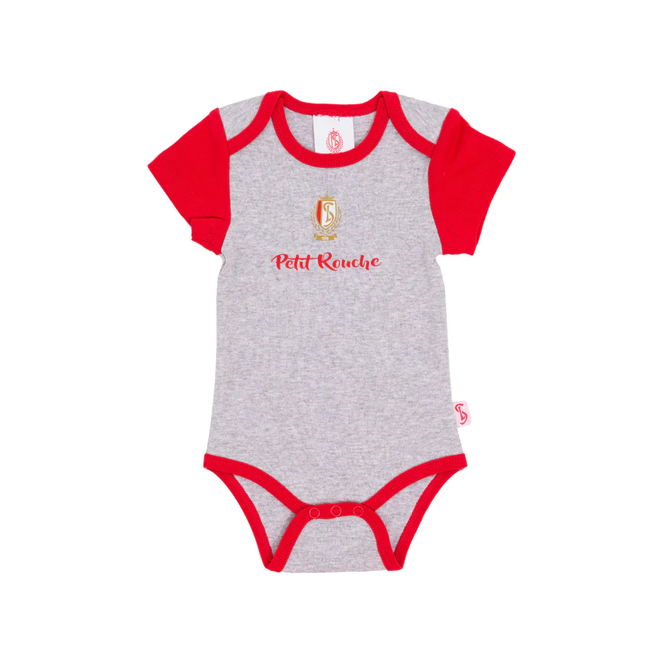 Faites de votre bébé un vrai petit Rouche avec ce body gris aux manches rouges, parfait pour afficher sa passion dès tout petit.