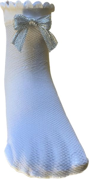 Chaussette girls GRAIN DE BLE couleur blanche nœud argent