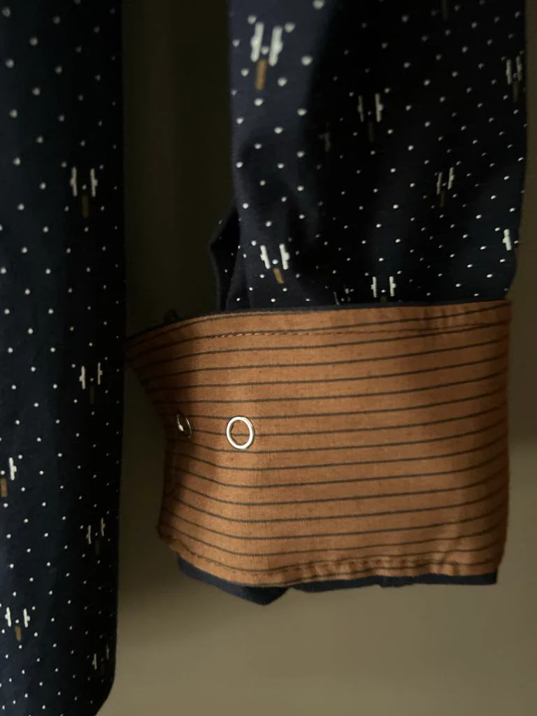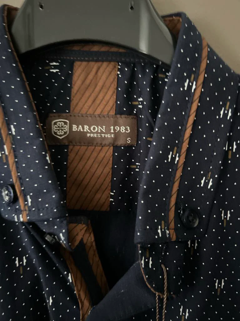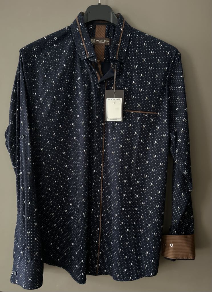 Chemise Baron 1983 Prestige en teinte marine élégante, ornée de motifs raffinés qui reflètent le savoir-faire de la marque. Confectionnée avec soin, cette pièce allie style intemporel et confort au quotidien. Disponible en deux tailles pour s’adapter à votre morphologie. Un basique de qualité à intégrer dans votre garde-robe pour des looks polyvalents et sophistiqués.