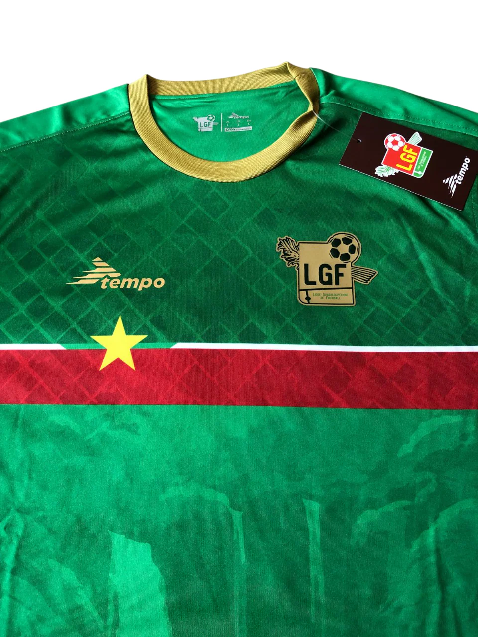 Notes : Le maillot Extérieur comme le maillot Domicile met en avant les trésors de la Guadeloupe. Sur la face avant, on peut apercevoir les majestueuses chutes du Carbet.
