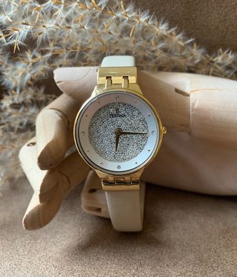 Cette jolie montre femme Festina présente un bracelet en cuir beige .