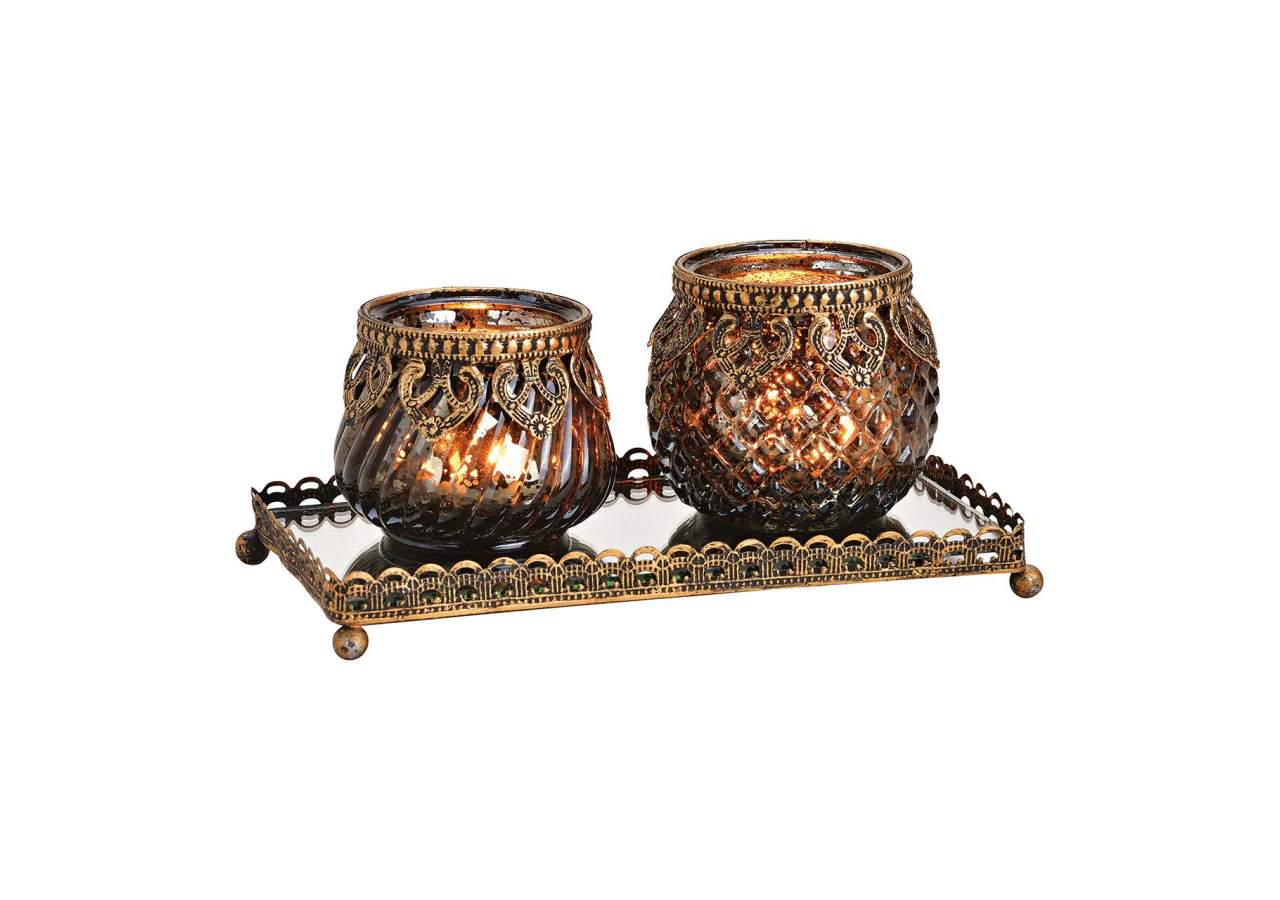 Apportez une touche d’élégance contemporaine à votre intérieur avec ce set de lanternes sur plateau miroir. Fabriquées en métal noir et or, ces trois pièces mesurant 20x9x10 cm allient robustesse et raffinement. Le plateau miroir reflète délicatement la lumière des bougies, créant une ambiance chaleureuse et sophistiquée. Parfait pour sublimer vos espaces de vie ou vos dîners, ce set conjugue design moderne et fonctionnalité avec une qualité irréprochable.