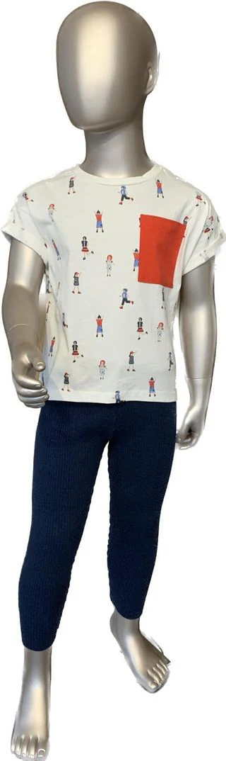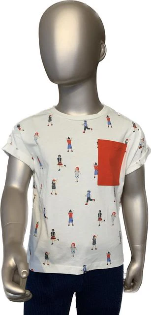 Tee-shirt BKZ blanc motifs fillettes poche rouge taille 3 ans