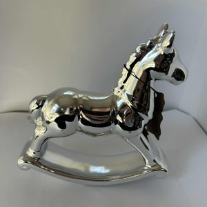Cheval à bascule en plâtre recouvert de peinture argentée fait main de GmbH (17*15.5)