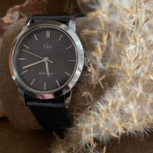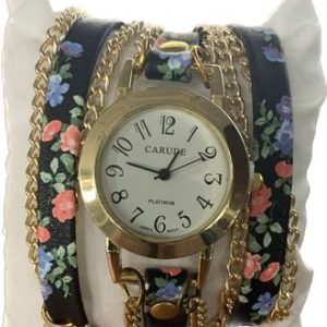 MONTRE FANTAISIE BRACELET BRACELET NOIR ET FLEURS