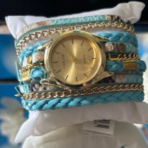 MONTRE FANTAISIE BRACELET TRESSE BLEU ET MOTIFS