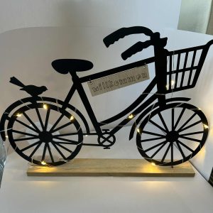 Vélo lumineux en métal éclairage led socle en bois GmbH (35*24cm)