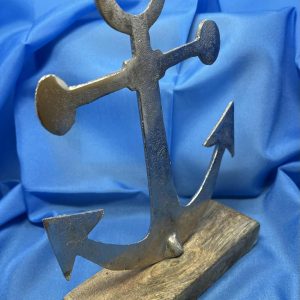 Ancre en métal argenté sur socle en bois de manguier (16*22cm) GmbH