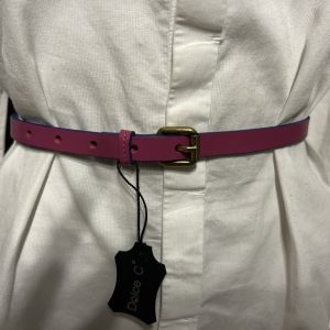 Ceinture rose liseré bleu boucle dorée Dolce C cuir